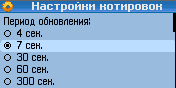 Меню возникает на экране при нажатии на одну из софт клавиш на вашем мобильном телефоне. Меню позволяет вам либо совершить какое-то действие, либо осуществить переход в какой-либо раздел терминала mobileforex. Примерный вид меню показан на рис.