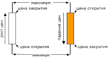 Пустое тело свечи означает, что цена закрытия была больше цены открытия, т.е. цены внутри диапазона росли (белая свеча - «йо-сен»).