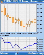 Индикатор Momentum (Момент) рассчитывает и строит график чистой разницы между ценой каждого бара, выражаемой в пунктах. Внешний вид индикатора: