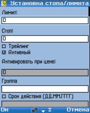 Установка стопа / лимита