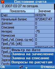 Таблица «Состояние счета» предназначена для отображения данных по счету клиента, а также для проведения операций зачисления или списания средств: