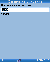 Чтобы вывести деньги со счета, выберите пункт меню «Заявка на списание»: