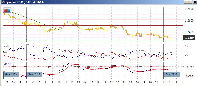 На четырёхчасовом графике пара вышла из узкого диапазона 1,2300-1,2355 в конце января. Относительные максимумы и минимумы пары теперь последовательно снижаются от 1,2355. Тенденция снижения слабая, но она, тем не менее, сохраняется. Выход пары из узкой консолидации, которая длилась долго, предполагает более значительный размер движения. Если исходить из возможно равенства волна снижения от 1,25 и от 1,2355 в 200 пунктов, то целью снижения может быть уровень 1,2155. Ближайшее сопротивление сейчас можно ожидать на ранее преодолённом уровне поддержки 1,2300.