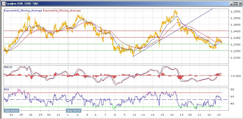 на 1.2300. ЕМА21 и ЕМА55 направлены вниз и