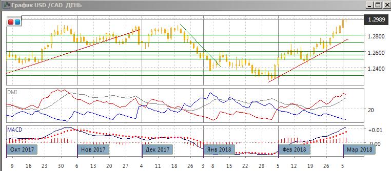 На дневном графике произошло закрытие выше уровня 1,2920 (сопротивления в октябре-декабре), и это открывает дорогу к дальнейшему росту пары. Ближайшего сопротивления с технической точки зрения не видно, кроме «круглого» уровня 1,3000. Тенденция роста усиливается — по ADX тенденция очень сильная, превышение DM+ над DM- очень большое, ADX на высоком уровне и растёт. Сигнал «падающей звезды» не сработал, и это подтверждает отсутствие поддержки для снижения. Скорее, рост будет продолжаться.