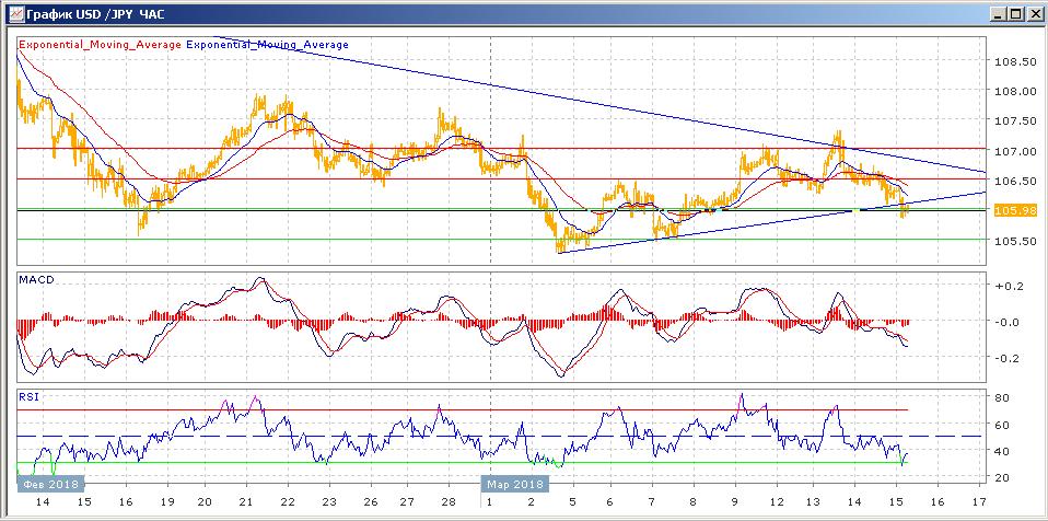 поддержку на 106.00, торгуясь ниже восходящей