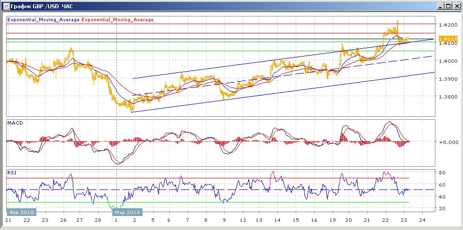 вышла выше 1.4100. Средние скользящие ЕМА21