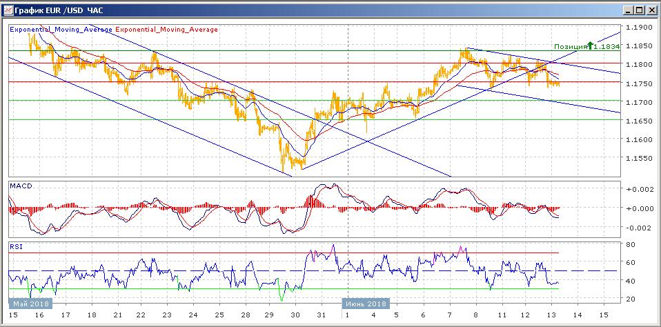 на 1.1745, продолжая показывать снижающиеся