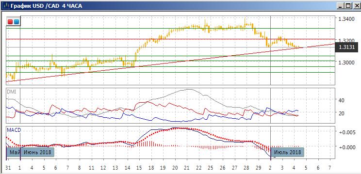 На четырёхчасовом графике пара снижается, после коррекции вверх пара вернулась к исходному уровню. Рост был ограничен ближайшим круглым уровнем на 1,3200. Преодоление уровня 1,3130 привело бы к и преодолению линии восходящего тренда, и предыдущего относительного минимума. Поэтому если пара закрепится ниже 1,3130, продолжение снижения будет более предпочтительным.