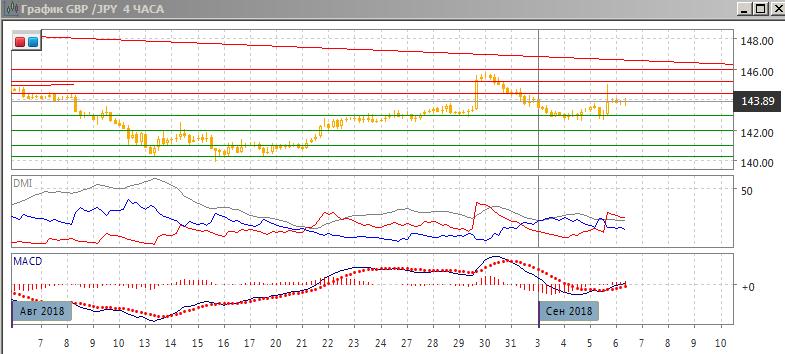 На четырёхчасовом графике у 143 образовалось двойное дно, после чего тенденция снижения (от 146) развернулась, пара существенно выросла из-за новостей в среду, хотя большая часть этого роста была отыграна. Но частично он был удержан, и дальнейший рост в краткосрочной перспективе кажется предпочтительным, с целью на 146,00 — уровню, от которого началось снижение в конце августа.