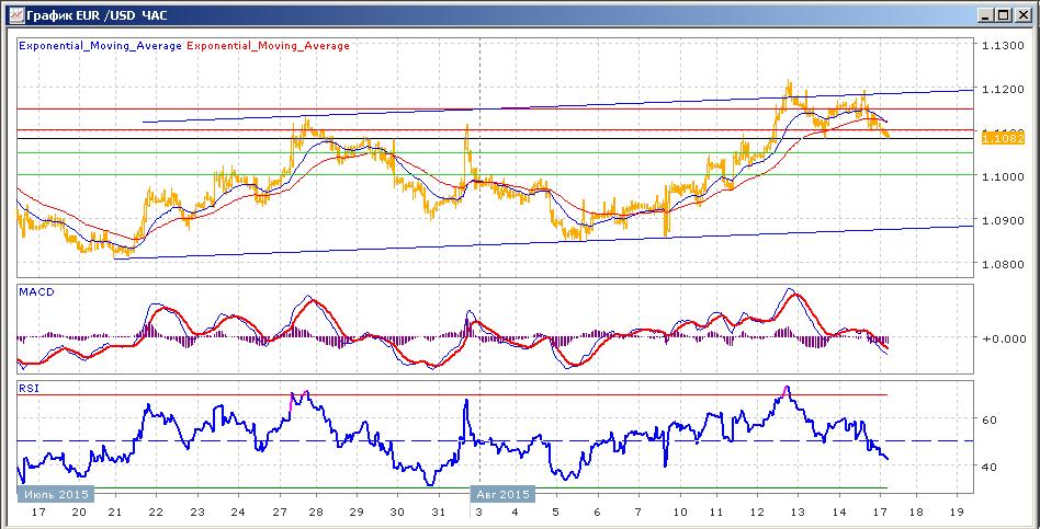 в целом, пара продолжает начатое 21 июля восходящее движение. В четверг пара закрылась почти без изменений на 1.1150, протестировав поддержку на 1.1100 в середине торгов. В пятницу пара снижалась, все попытки закрепиться выше 1.1150 не удались, пара закрылась на 1.1115. сегодняшние торги проходят со снижением пары, которая ушла ниже 1.1100.Средние скользящие ЕМА55 и ЕМА21 пересеклись вниз и готовы снижаться. Индикаторы MACD и RSI в пятницу ушли ниже своих центральных линий и сегодня снижаются. Сегодня цели вверх — 1.1150, 1.1100. Цели вниз на сегодня — 1.1050, 1.1000