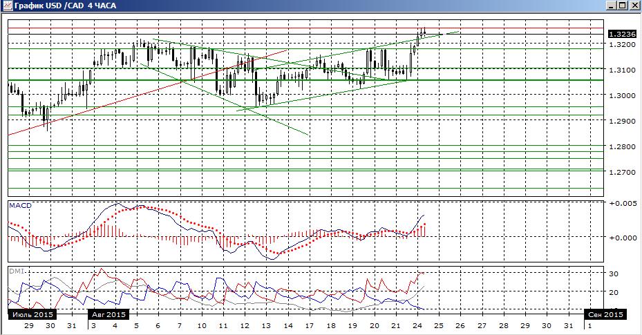 На дневном графике пара выросла выше уровня сопротивления 1,3180. Был достигнут новый максимум — 1,3262. Завершение коррекции пары вниз от 1,32 предполагает продолжение тенденции роста, если закрытие будет выше 1,3180. По ADX тенденция роста сохраняется: DM+ выше DM-.