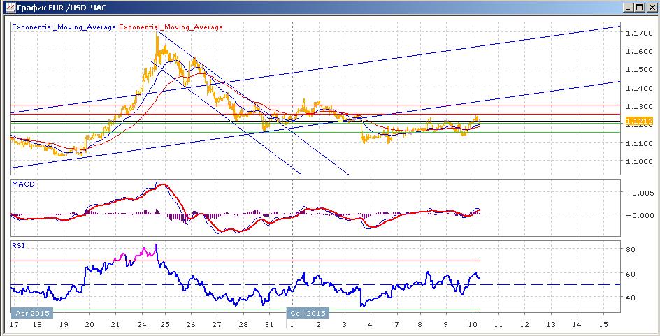 Пара продолжает медленный рост, начатый в конце прошлой недели. Во вторник пара закрылась с умеренным ростом, таки не сумев преодолеть сопротивление на 1.1200. вчера торги завершились почти без изменений, хотя пара и уходила в ходе торгов ниже 1.1150. пара закрылась немногим выше 1.1200. сейчас торги проходят на уровне открытия, хотя в начале торгов пара отметки 1.1248. Средние скользящие ЕМА55 и ЕМА21 пересеклись вверх и начали расти. Индикаторы MACD и RSI сегодня вышли выше своих центральных линий и растут. Сегодня цели вверх — 1.1250, 1.1300. Цели вниз на сегодня — 1.1200, 1.1150