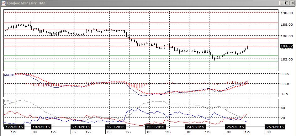 На часовом графике пара перешла к росту: относительные минимумы и максимумы пары растут, DM+ выше DM-, гистограмма MACD в положительной зоне, линия MACD направлена вверх. Ближайший сильный уровень сопротивления — 184,70.