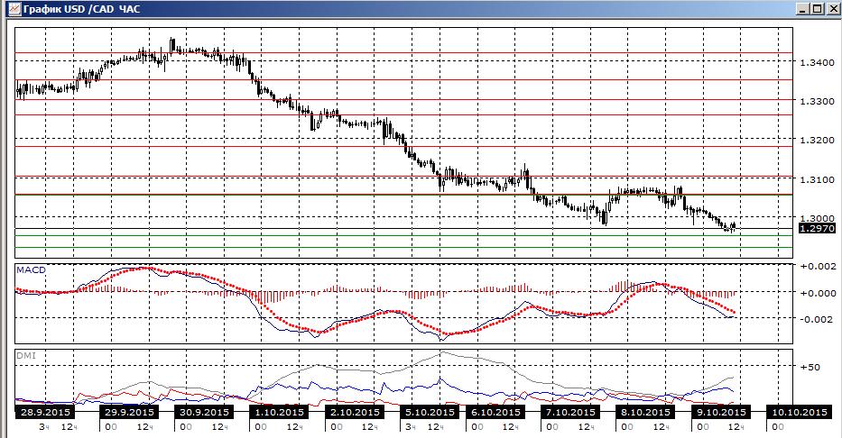 На дневном графике продолжается снижение от 134,00. В целом картина не изменилась. Пара почти достигла целевого уровня для снижения 1,2950, около относительного минимума августа. По индикаторам направленного движения тенденция снижения усиливается: превышение DM- над DM+ увеличивается, гистограмма MACD снижается в отрицательной зоне, линия MACD имеет отрицательный наклон. Снижение пары остаётся предпочтительным, пара уже ниже предыдущего относительного минимума, что обозначает смену тенденции. Пара приблизилась к сильной зоне поддержки, что вместе со значительным размером волны снижения без коррекций может привести к отскоку вверх, однако даже в этом случае снижение будет выглядеть предпочтительным. В последние дни канадский доллар укрепляется вне зависимость от новостного фона, что является сильным бычьим сигналом.