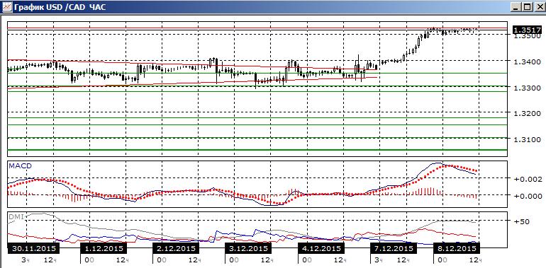 На дневном графике пара вышла из треугольника вверх, преодолев уровень 1,3400, и сразу же 1,3500. Пара резко выросла с гэпом, свеча понедельника была широкодиапазонной. Скорее, это говорит о перспективе дальнейшего роста пары, несмотря на сохранение медвежьего расхождения максимумов пары и гистограммы MACD. По ADX тенденция роста остаётся сильной и она усиливается — превышение DM+ над DM- большое и увеличивается, ADX также растёт.