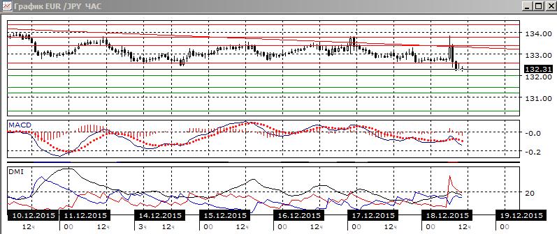 На четырёхчасовом графике пара перешла к снижению: если откорректировать краткосрочную линию тренда снижения, то он работает. Пара снизилась от уровня сопротивления 133,40 и преодолела уровень поддержки 132,60, который ранее тестировался (также это относительный минимум 14 декабря). Относительные минимумы и максимумы пары снижаются. Ближайший уровень поддержки — 132,00, это важный уровень поддержки/сопротивления, проявившийся в ноябре.