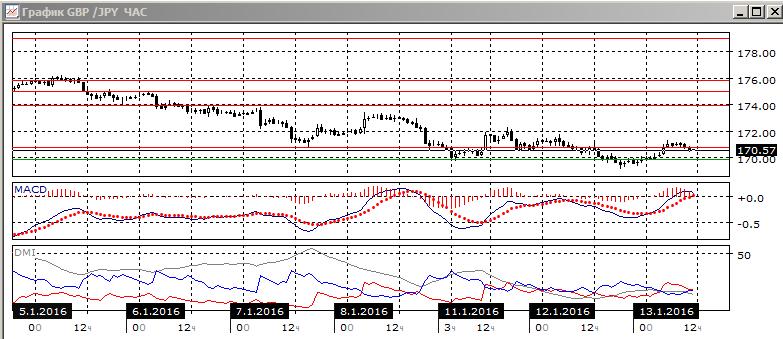 На дневном графике в целом картина не изменилась: пара достигла нового минимума 169,12, но уровень поддержки 169,90 не преодолён. Как и ранее, пара остаётся ниже линии нисходящего тренда, тенденция по снижения по ADX сильная, ADX растёт, бычьего расхождения минимумов по гистограмме MACD нет, последовательность снижения относительных минимумов и максимумов пары не нарушена. Так как движение вверх поддержки не получает, предпочтительным видится продолжение снижения, так как это сильная тенденция.Уровни сопротивления: 170,75; 172,00