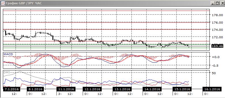 На дневном графике в целом картина не изменилась: пара в четверг достигла нового минимума, она остаётся ниже уровня сопротивления на 170,75. Как и ранее, пара остаётся ниже линии нисходящего тренда, тенденция по снижения по ADX сильная, ADX растёт, бычьего расхождения минимумов по гистограмме MACD нет, последовательность снижения относительных минимумов и максимумов пары не нарушена. Изменение можно считать замедление снижения, это видно по изменению наклона графике. Вместе с тем, тенденция очень сильная, и скорее она будет продолжаться и далее.На часовом графике поддержку на 169,00 можно считать укрепившейся — рядом четыре недавних относительных минимума, при том что тенденции в этом масштабе не видно, и можно предположить, что до какого-нибудь внешнего фактора, не являющегося техническим, этот уровень не будет преодолеваться.