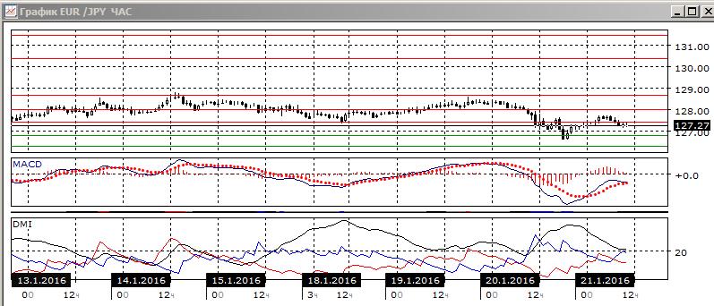 На часовом графике рост от 126,80 приостановился, и можно рассматривать его как коррекционный к снижению пары. Пара вернулась ниже уровня 127,45 и более вероятным видится завершение коррекционного движения с новым тестированием уровня 126,80.