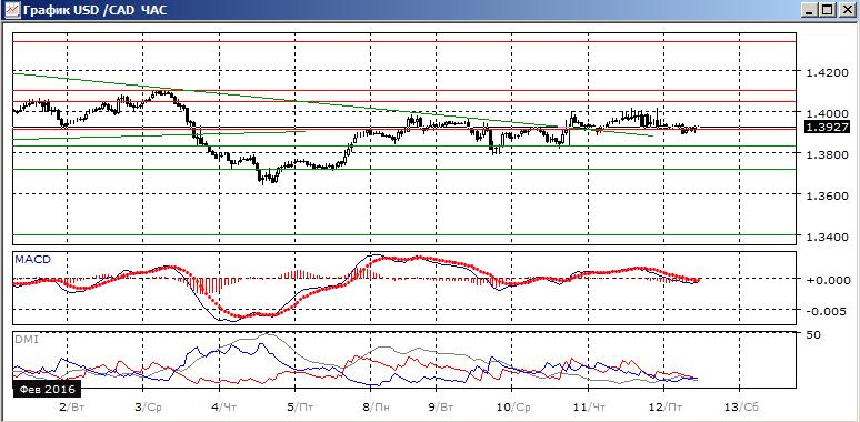 На четырёхчасовом графике можно рассматривать направленный вверх треугольник с верхней границей около 1,4000. По индикаторам направленного движения явной тенденции нет. Преодоление линии нисходящего тренда делает предпочтительным рост пары с преодолением уровня 1,4000 (но этот стоит сначала дождаться).