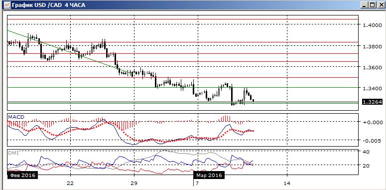 На четырёхчасовом графике пара снижается от 1,3400. Достигнут уровень поддержки на 1,3250, от которого было 2 или 3 отскока недавно, если рассматривать движение по-разному. Исходя из движения между уровнями 1,3250 и 1,3400 предпочтителен рост к верхней границе. Более сильное движение, скорее, будет в направлении выхода пары за пределы этих уровней.