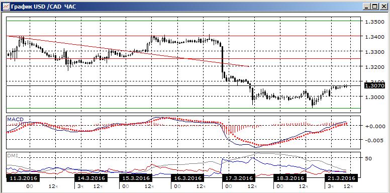 На четырёхчасовом графике видно, что тестирование уровня 1,3000 закончилось отскоком вверх. Пара выше предыдущих относительных минимумов. Гистограмма MACD перешла на положительную территорию, наклони линии MACD стал положительным. Исходя из того, что снижение не возобновилось и образуются свечи «дожи», скорее пара в краткосрочной перспективе будет расти, целью видится уровень 1,3200.