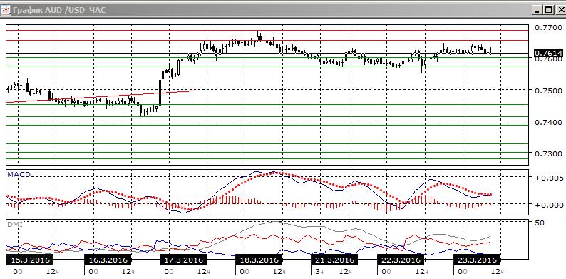 На часовом графике пара перешла к росту после того, как около 0,7575 образовалось тройное дно с ложным пробоем вниз. Закрепление пары выше 0,7600 делает продолжение роста предпочтительным.