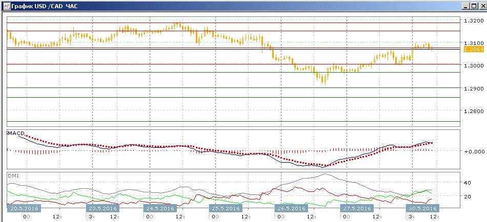 На четырёхчасовом графике пара перешла к росту. Преодоление парой уровня 1,3000 и далее при снижении к нему поддержка там скорее характерны для преодоления уровня и продолжении движения вверх. Пара достигла зоны относительных минимумов 20-25 мая с поддержкой на 1,3075. Закрепление выше этого уровня выводит пару к 1,3185 — около относительного максимума 24 мая.