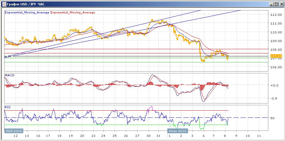 протестировала поддержку на 107.00. Средние