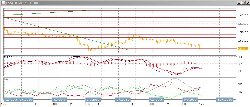 На четырёхчасовом графике видно, что пара почти вернулась к исходной точке коррекции на 153,30, и он, вероятно, вскоре будет достигнут. Дальнейшее зависит от того, закрепится ли пара ниже этого уровня. Пока продолжение снижения кажется предпочтительным. По индикаторам направленного движения тенденция снижения усиливается, и это предполагает, что скорее всего она будет продолжаться.На часовом графике пара последовательно снижается, последняя существенная остановка была около 156,00 — сначала уровень выступал поддержкой, потом сопротивлением, когда около него образовалось несколько относительных максимумов и снижение продолжилось. Пара резко снизилась в течение часа, и скорее этот импульс пока будет сохраняться.