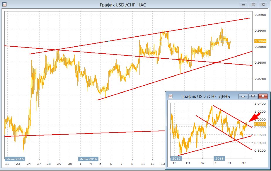 Франк зажат в неровный восходящий канала с границами примерно 0,9220 и 0,9930. Причем из-за приоритета дневок эти часовые границы тоже нельзя назвать хорошими уровнями поддержки и сопротивления, поэтому описать ситуацию по этой паре мы еще как-то можем, а вот прогноз делать просто бессмысленно. Лучше переходите на фунт, там возможно будет интереснее.