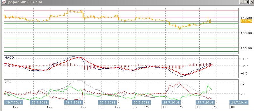 На часовом графике пара растёт, однако рост остановился на 140,00 — уровне, где происходила консолидация 21-22 июля и который позже, 25 июля, уже выступал сопротивлением для пары. Быстрый откат от этого уровня делает предпочтительным разворот вниз.