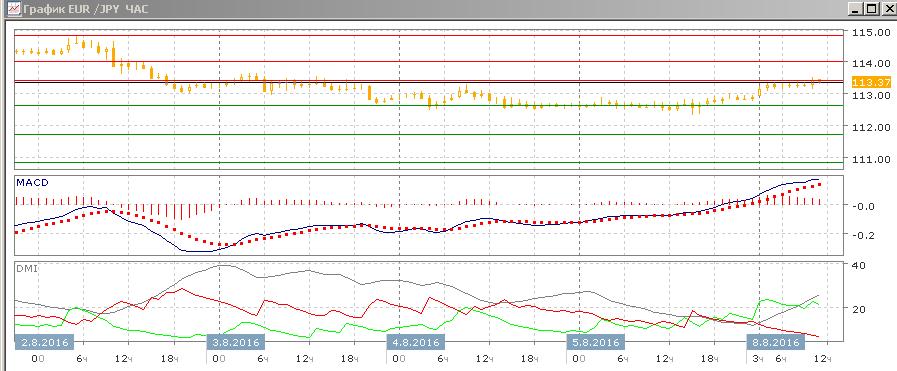На часовом графике образуются свечи «дожи» ниже 113,40. Скорее, ближайшая перспектива определится тем, устоит ли уровень сопротивления 113,40 — при его преодолении ближайшей целью становится уровень 115,00, при откате целью видится уровень поддержки на 112,65.