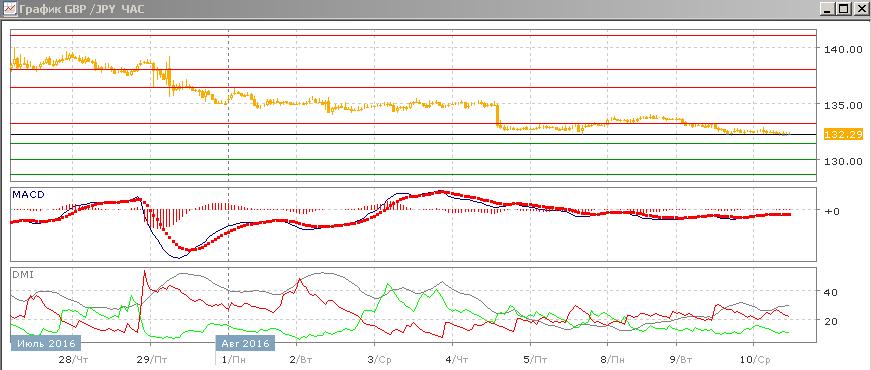 На часовом графике пара находится в узком диапазоне около 132,30. Скорее, дальнейшее движение будет в направлении выхода за границы 132,30-133,00.