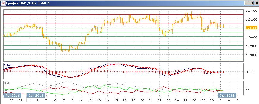 На четырёхчасовом графике картина снижения от 1,3250 не нарушена — после прорыва уровня поддержки 1,3200 отскок пары от 1,3050 приостановился около этого этого уровня, после чего снижение возобновилось. Последовательность снижения относительных максимумов и минимумов от 1,3250 не нарушена. Ближайшей целью видится возвращение пары к уровню 1,3050.