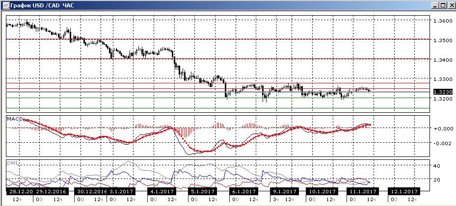 На четырёхчасовом и часовом графика происходит движение в консолидации 1,3200-1,3250/75. Предпочтительный выход их диапазона — вниз, в направлении предшествующего движения. Однако то, что консолидация после снижения не была краткосрочной и продолжается с 5 января, скорее говорит о том, что влияние предыдущего движения ослабевает в торговле в диапазоне, и дальнейшее более значительное движение пары будет в направлении выхода из диапазона. Сейчас, учитывая откат от 0,3250, ближайшей целью видится уровень 1,3200.