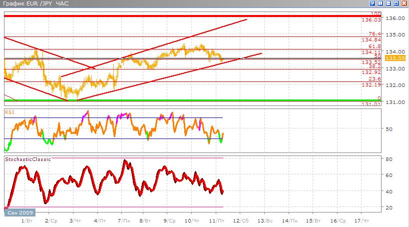 Данная валюта образовала себе новый канал, на этот раз восходящий. Он будет действовать до завершения его в точке 100% по Фибоначчи. И находясь у края нижней точки, он совершает в данный момент отскок к верхнему краю. Данное предположение подтверждают и другие индикаторы такие как Stohastic у которого произошло пересечение быстрой и медленной скользящей с низу наверх, что указывает на сигнал к покупке, тоже указывает нам и другой индикатор RSI развернувшись из зоны перепроданности в направление покупки. Все это также косвенно указывает на, то что сейчас многие валюты растут по отношению к доллару, в частности euro и jpy.