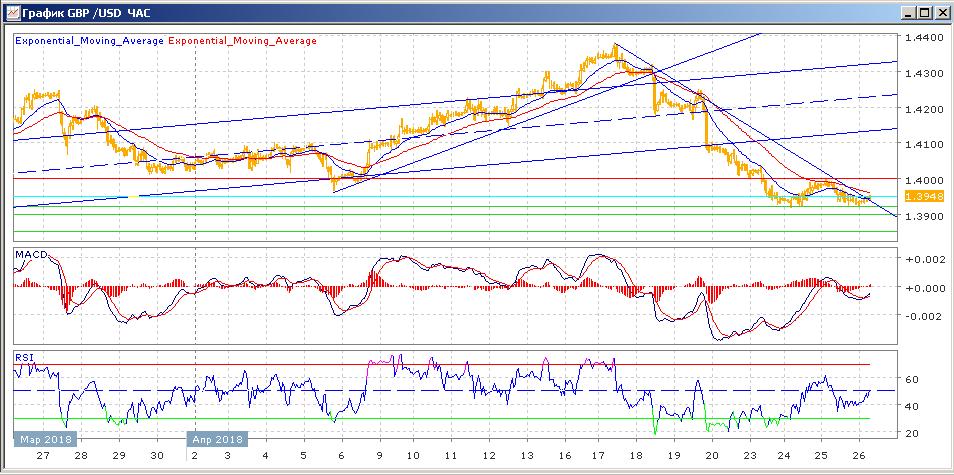 на 1.3950. Средние скользящие ЕМА21 и ЕМА55