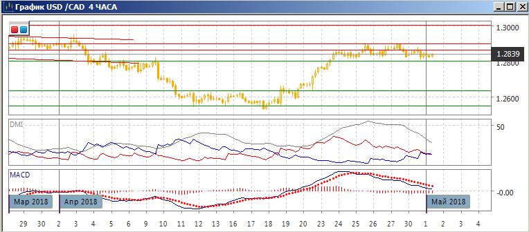На дневном графике пара после роста от 1,2550 находится в консолидации 1,2800-1,2900. Это ниже важного уровня сопротивления 1,2920 (максимумы октября-декабря 2017 г.). Вместе с тем, отсутствие отката говорит о то, что верхний уровень, вероятно, будет вновь тестироваться. По ADX тенденцией является рост: DM+ выше DM-, гистограмма MACD остаётся в положительной зоне, линия MACD имеет положительный наклон.