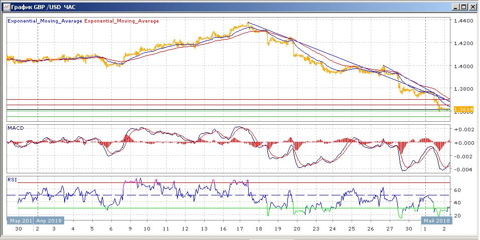 Индикаторы MAСD и RSI находятся ниже своих