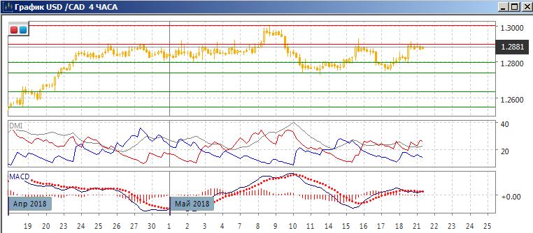 На дневном графике пара вновь получила поддержку у 1,2740, где образовался небольшой «молот». После чего пара выросла выше уровня 1,2800 (нижней границы канала в конце апреля — начале мая). При этом пара достигла 1,2900 — уровня верхней границы канала. Образовалась разворотная модель с «молотом», и при закрытии выше 1,2900 дальнейший краткосрочный рост будет более вероятным. Это движение также соответствовало бы расширению границы канала с конца апреля до 1,2749-1,3000.