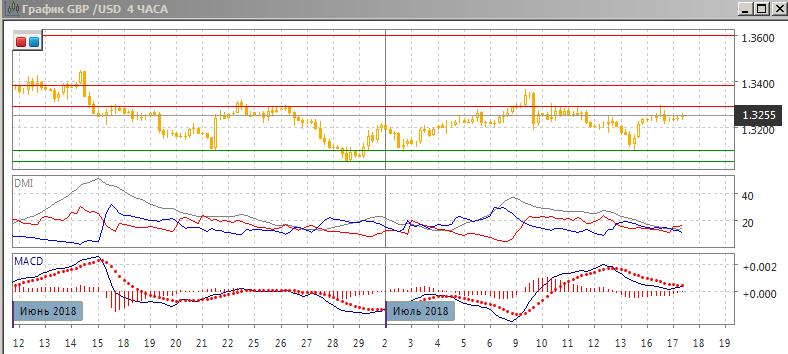 На четырёхчасовом графике — флэт, пара находится в диапазоне 1,3055-1,3385, сейчас около его середины. Образование свечей «дожи» подтверждает отсутствие направленного движения. Консолидация выше уровня поддержки на 1,3200 делает немного более предпочтительным рост. По индикаторам направленного движения — флэт: DM- и DM+ близки, ADX продолжает снижаться, рост гистограммы MACD к нулевому уровню идёт при небольшом отрицательном наклоне линии MACD.