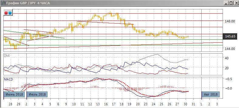 На четырёхчасовом графике, однако, видно замедление снижения: отрицательный наклон волны снижения уменьшается, образовалось бычье расхождение минимумов пары и гистограммы MACD, что увеличивает вероятность отскока вверх. Сигналом подтверждения может быть возвращение выше уровня 146,00. По RSI в этом масштабе также образовалось бычье расхождение минимумов пары и гистограммы MACD. Однако до фактического разворота продолжение тенденции видится предпочтительным, так как пара не находится рядом с сильной поддержкой.