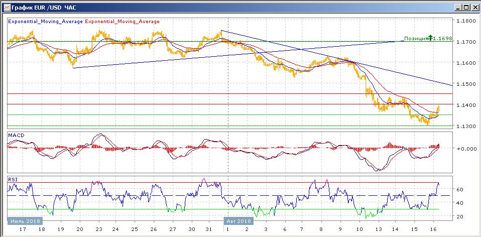 растет. Средние скользящие ЕМА21 и ЕМА55