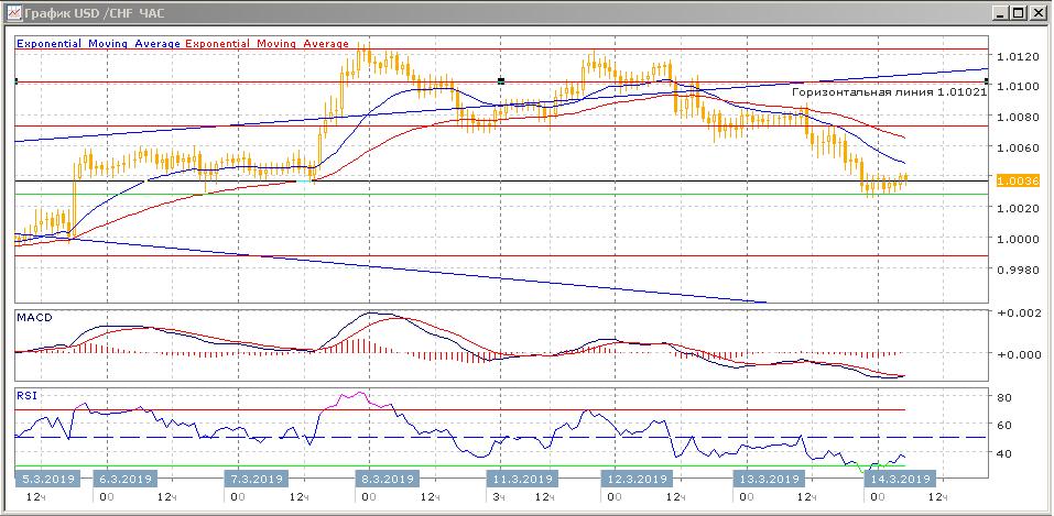 Индикаторы MAСD и RSI опустились в область ниже своих центральных линий, продолжая снижение, что сигнализирует о перепроданности данного торгового инструмента, уменьшая вероятность преодоления рынком текущего уровня поддержи 1.0028.