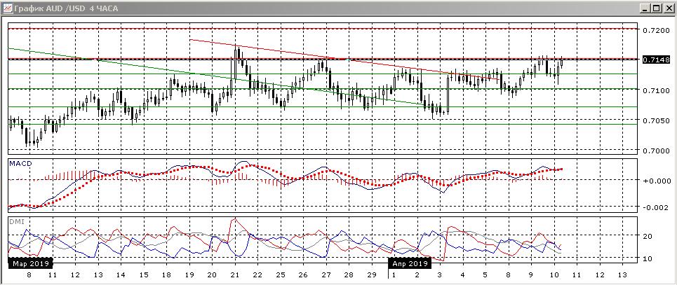На четырёхчасовом графике также видно, что пара получила поддержку у ранее преодолённого уровня 0,7125 (уже в третий раз). Нижние тени свечей у 0,7125 показывают, что снижение не поддерживается, и пока пара выше этого уровня, отскок вверх кажется более вероятным. Закрепление ниже 0,7125 изменило бы картину.