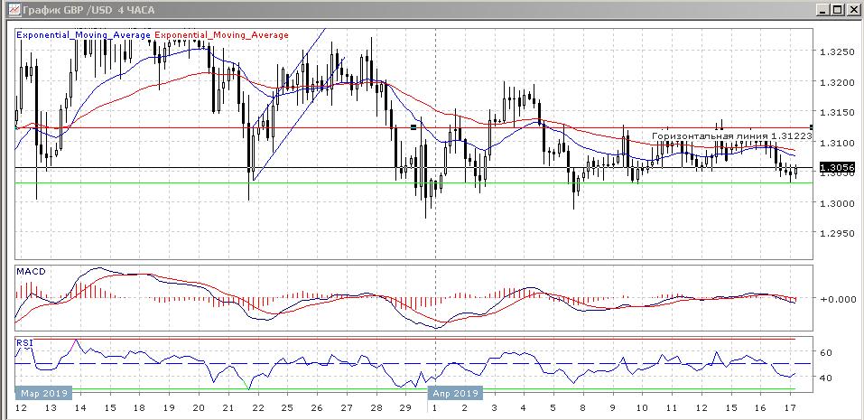 На торгах в среду наблюдается небольшое усиление продавцов данного торгового инструмента, и мы видим как медведи продавили цену ниже уровня поддержки на 1.3064, опустив его до области в районе отметки 1.3031 (минимум текущей недели). Уровень сопротивления опускается до 1.3122.