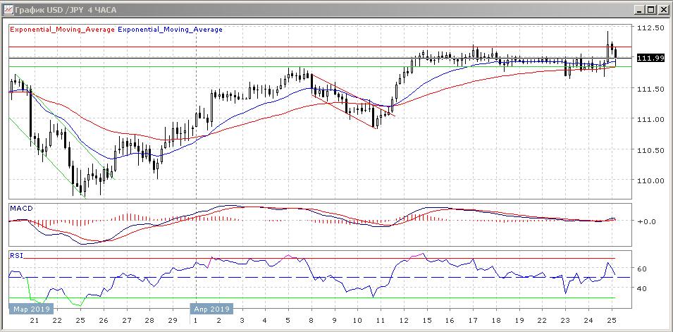 Скользящие средние с периодом в 21 и 55 дней пока прекратили рост, и развиваются в боковом тренде, а четырёхчасовой график поднялся в область выше них.