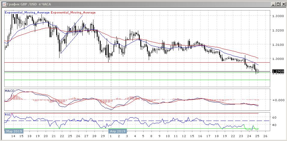 Техническая картина в краткосрочной перспективе явно медвежья. Четырёхчасовой график остаётся ниже скользящих средних с периодом 21 и 55 дней. Гистограмма MACD развивается ниже своей центральной линии, а индикатор относительной силы тренда RSI подаёт сигнал на продажу, сообщая о сильной, нисходящей тенденции с признаками перепроданности данного торгового инструмента.